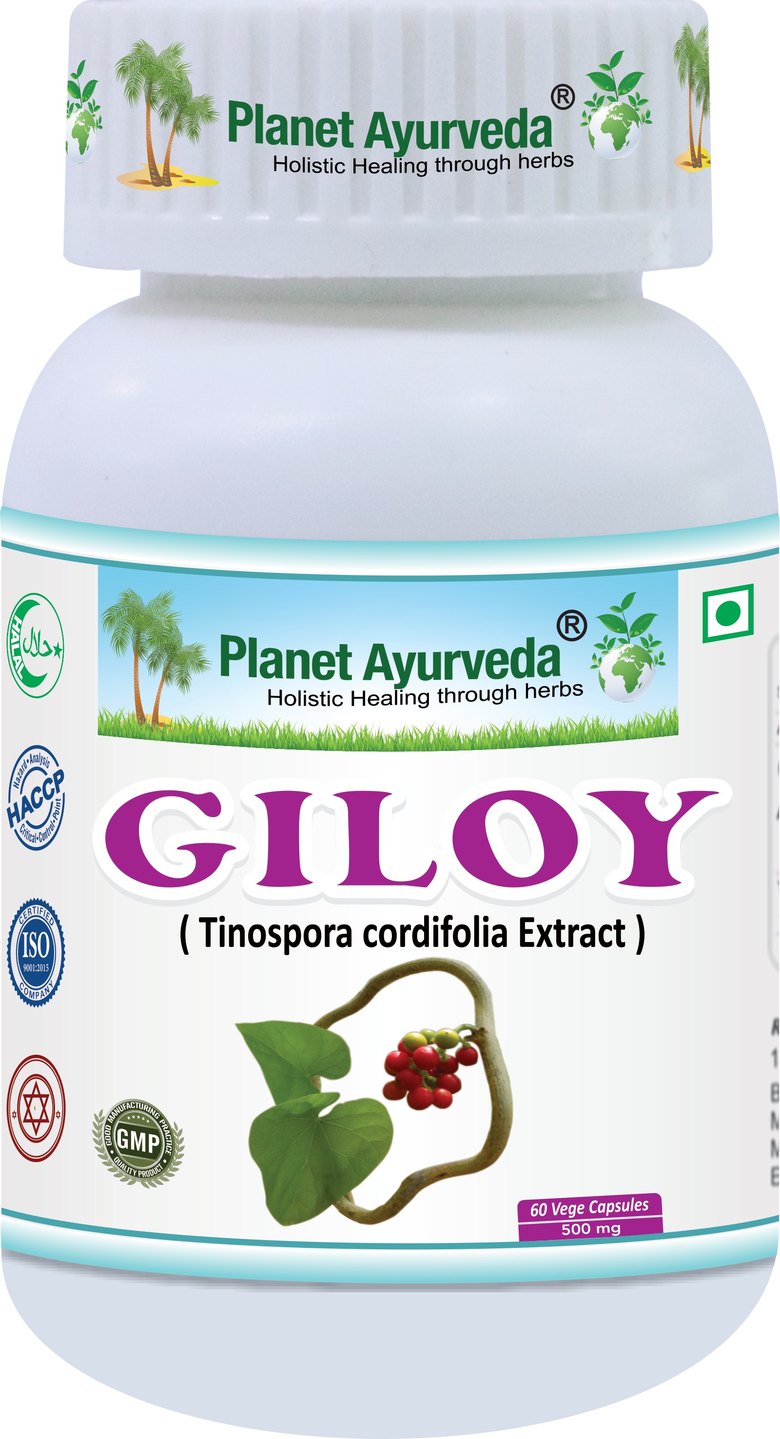 Doplněk stravy Standardizovaný extrakt 100% rostlinné Giloy ( Tinospora cordifolia ), známá také jako Guduchi , je v ájurvédě nazývána „Amrita" – nektarem nesmrtelnosti . Tento silný adaptogen a antio