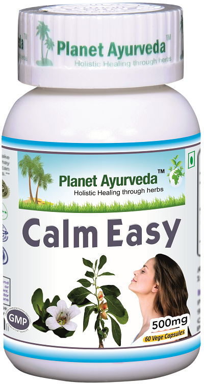 Doplněk stravy Standardizovaný extrakt 100% rostlinné Calm Easy je synergická kombinace 3 nejúčinnějších ájurvédských bylin pro zklidnění mysli – Brahmi, Ashwagandhy a Valeriány . Tyto byliny společně