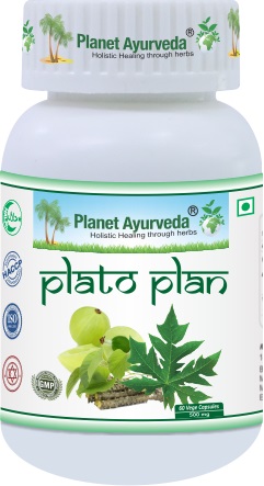Doplněk stravy Standardizovaný extrakt 100% rostlinné Plato Plan je ajurvédská kombinace rostlinných extraktů pro zvýšení počtu krevních destiček , prodloužení životnosti krevních destiček a podporu i