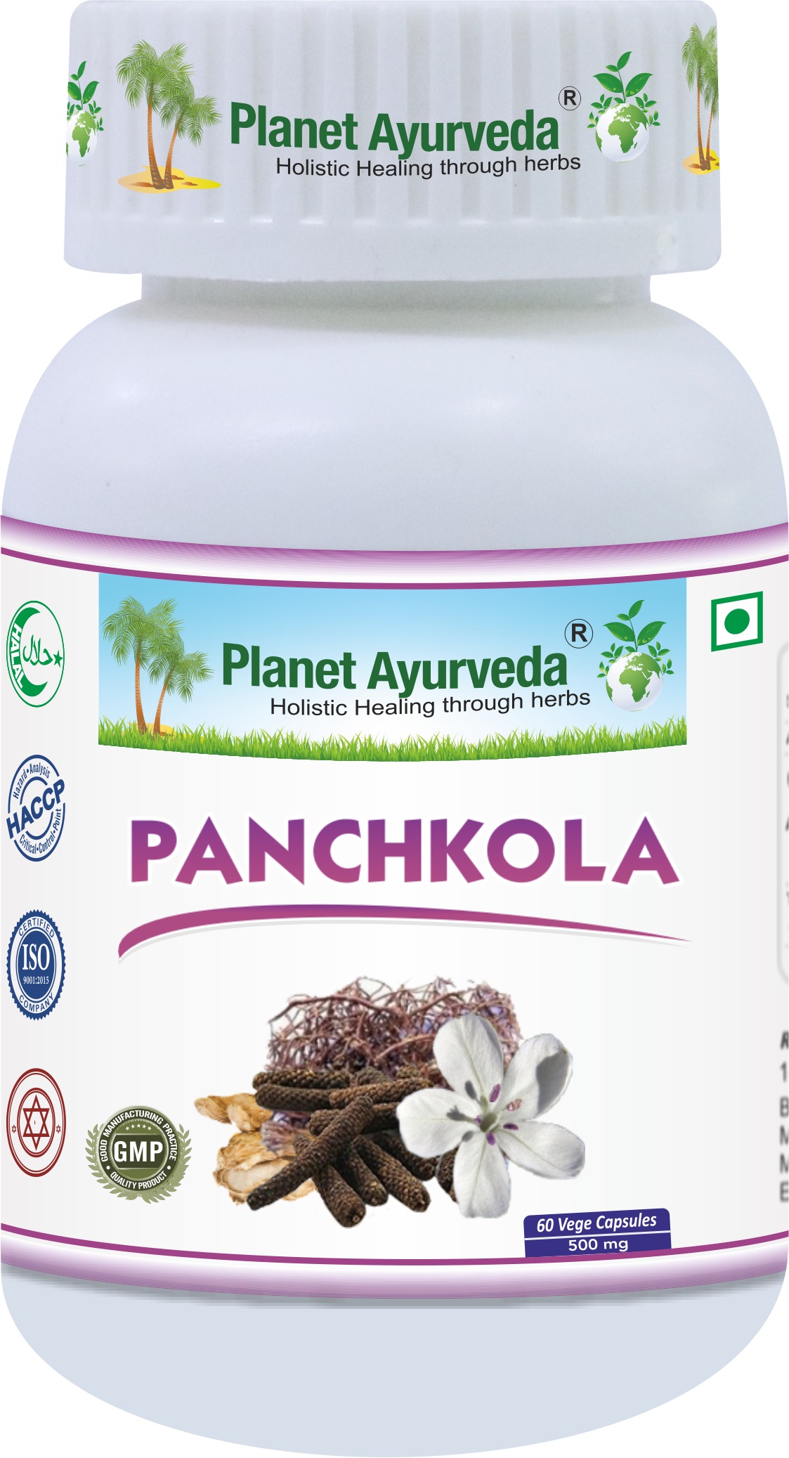 Doplněk stravy Standardizovaný extrakt 100% rostlinné Panchkola je tradiční ájurvédská směs pěti hřejivých bylin , která účinně podporuje trávicí oheň (Agni) a pomáhá tělu zbavovat se nahromaděných to