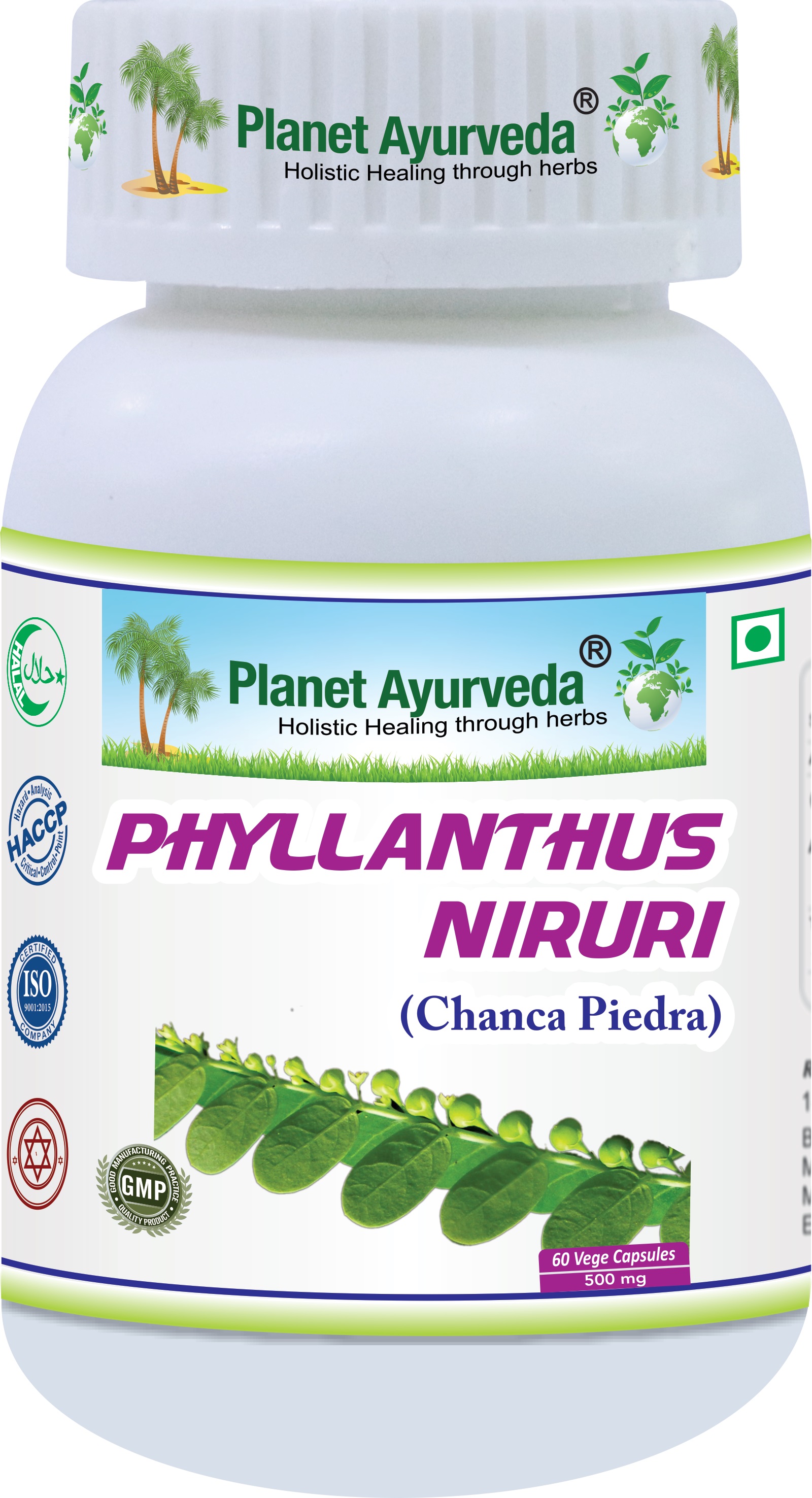 Doplněk stravy Standardizovaný extrakt 100% rostlinné Phyllanthus niruri (Chanca piedra) podporuje činnosti jater, ledvin a celé vylučovací soustavy. Používá se také ke zvýšení celkové obranyschopnost